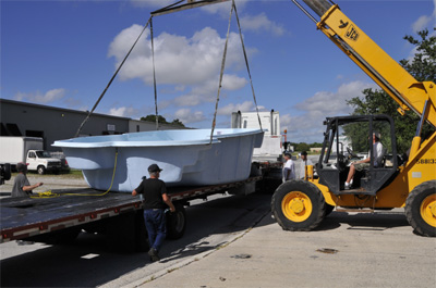 Your Premium Leisure Pool is delivered to the site with fittings in place you requested. You may have to mount supplemental items not ordered with your pool, such as additional inlets or jets. It is easiest to drill and install these items while the pool is out of the ground. Most of the pool's plumbing should wait until the pool is in the ground, except for the main drain line. This line should be stubbed up and tied to the pool prior to setting the pool in the hole. There won't be room to do this once the pool is in place. If any additional plumbing is attached to the pool prior to setting, extreme care must be used to insure these pipes are not damaged while setting the pool. It is best to leave additional plumbing lines until after the shell is inserted.